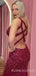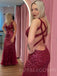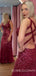 Mermaid Burgundy Sequin V-neck Long Evening Prom Dresses, Cheap Custom Prom Dresses, MR7804