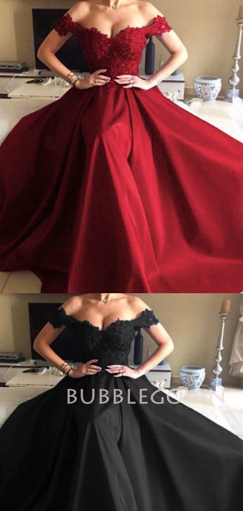 Off Shoulder A-Line Dark Red Long Evening Prom Dresses, MR7112