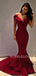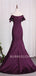 Off Shoulder Mermaid Burgundy Satin Long Evening Prom Dresses, Long Party prom dresses, MR7181