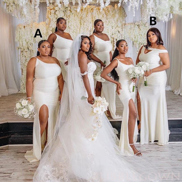 One Shoulder White Chiffon Elegant Cheap Long Bridesmaid Dresses , BN1089 One Shoulder White Chiffon Elegant Cheap Long Bridesmaid Dresses , BN1089