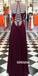 Elegant Burgundy Halter Side Split Prom Dresses FP1222